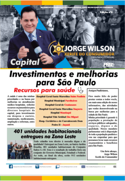 “O Deputado Estadual Jorge Wilson Gonçalves de Mattos agradece mais uma vez os votos recebidos e reafirma seu compromisso de atuar na Assembleia Legislativa do Estado de São Paulo em defesa dos direitos do consumidor.”